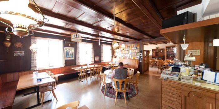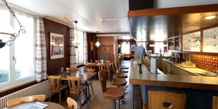 Unsere Gaststube, wo sich ein bunt gemischtes Publikum trifft. 40 Plätze plus 8 Plätze an der Bar.